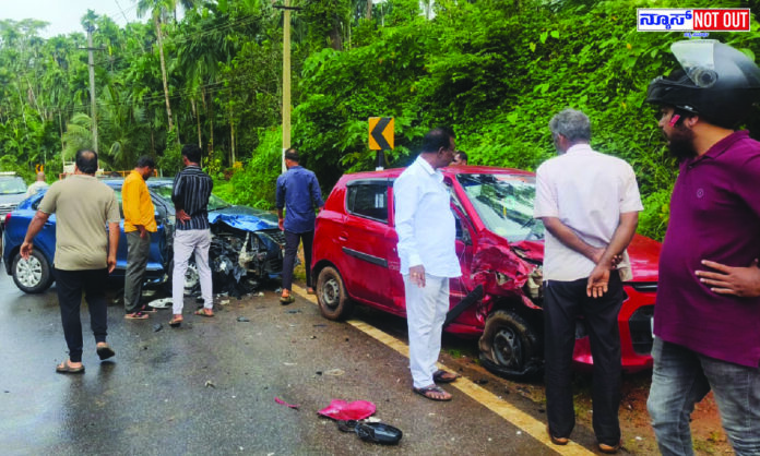 ಪಂಜಿಗುಂಡಿ: ಕಾರುಗಳ ನಡುವೆ ಮುಖಾಮುಖಿ ಡಿಕ್ಕಿ, ಎರಡೂ ಕಾರುಗಳು ಜಖಂ