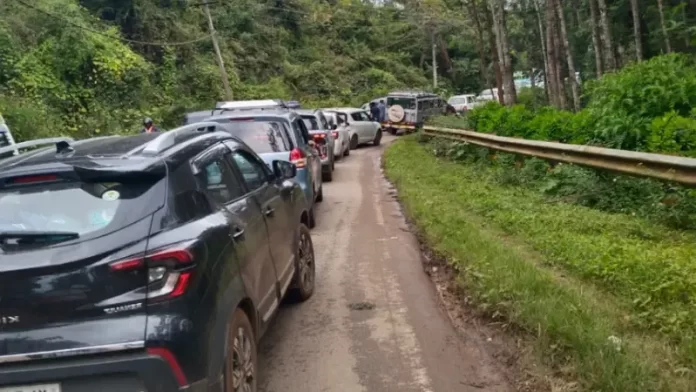 ನ್ಯೂಸ್ ನಾಟೌಟ್ : ಚಿಕ್ಕಮಗಳೂರು ಜಿಲ್ಲೆಯ ಪ್ರವಾಸಿ ತಾಣಗಳಿಗೆ ಪ್ರವಾಸಿಗರು ಲಗ್ಗೆ ಇಡುತ್ತಿದ್ದಾರೆ. ಇದರಿಂದ ಮುಳ್ಳಯ್ಯನಗಿರಿ ಮಾರ್ಗದಲ್ಲಿ 4-5 ಕಿ.ಮೀ ವರೆಗೂ ವಾಹನಗಳು ಸಾಲುಗಟ್ಟಿ ನಿಂತಿವೆ.
