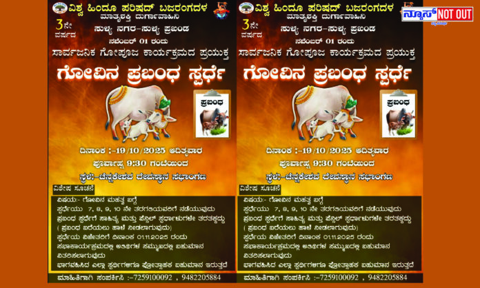 ನ್ಯೂಸ್ ನಾಟೌಟ್: ವಿದ್ಯಾರ್ಥಿಗಳಲ್ಲಿ ಗೋವುಗಳ ಬಗ್ಗೆ ಜಾಗೃತಿ ಮೂಡಿಸಲು ಮತ್ತು ನಮ್ಮ ಪವಿತ್ರ ಸಂಸ್ಕೃತಿಯ ಪರಂಪರೆಯ ಬಗ್ಗೆ ಗೌರವ ಬೆಳೆಸುವ ನಿಟ್ಟಿನಲ್ಲಿ ವಿಶ್ವ ಹಿಂದೂ ಪರಿಷತ್ ಬಜರಂಗದಳ ಮಾತೃಶಕ್ತಿ ದುರ್ಗಾವಾಹಿನಿ ಸುಳ್ಯ ನಗರ- ಸುಳ್ಯ ಪ್ರಖಂಡ ವತಿಯಿಂದ ನವೆಂಬರ್ 1 ರಂದು ನಡೆಯಲಿರುವ ಸಾರ್ವಜನಿಕ ಗೋಪೂಜೆ ಕಾರ್ಯಕ್ರಮದ ಅಂಗವಾಗಿ “ಗೋವಿನ ಪ್ರಬಂಧ ಸ್ಪರ್ಧೆ” ಎಂಬ ವಿಶೇಷ ಸ್ಪರ್ಧೆಯನ್ನು ಆಯೋಜಿಸಲಾಗಿದೆ.