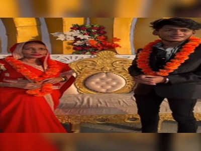 ಇಬ್ಬರೂ ಕೊರಳಿಗೆ ಹಾರ ಹಾಕಿಕೊಂಡಿದ್ದಾರೆ. ಇಬ್ಬರೂ ಮದುವೆಯಾಗಿದ್ದೀರಾ? ಎಂದು ಯಾರೋ ಆ ಯುವಕನನ್ನ ಕೇಳಿದ್ದಾರೆ. ಆಗ ಆತ ಹೌದು ಎಂದು ಉತ್ತರಿಸಿದ. ಆಗ ಆ ವ್ಯಕ್ತಿ ಯುವಕನ ವಯಸ್ಸು ಕೇಳಿದಾಗ ಆತನಿಗೆ 21 ವರ್ಷ ಮತ್ತು ಮಹಿಳೆಗೆ 52 ವರ್ಷ ಎಂದು ಹೇಳಿದ್ದಾನೆ. ಈ ಜೋಡಿಯ ಫೋಟೋ ಮತ್ತು ವಿಡಿಯೋಗಳು ಈಗ ಸಖತ್ ಸೌಂಡ್ ಮಾಡುತ್ತಿವೆ. ಅನೇಕರು ವಿವಿದ ರೀತಿಯಲ್ಲಿ ಫನ್ನಿ ಫನ್ನಿಯಾಗಿ ಕಾಮೆಂಟ್ ಮಾಡುತ್ತಿದ್ದಾರೆ.