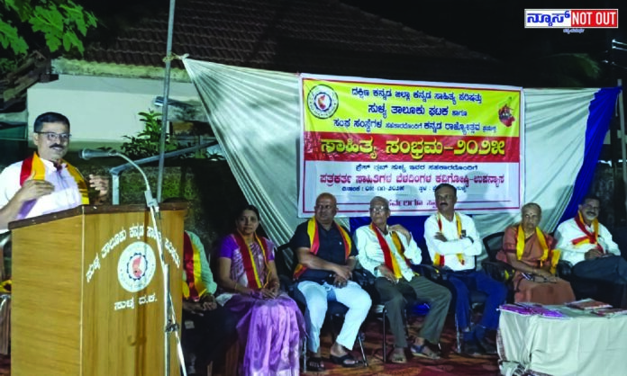 ನ್ಯೂಸ್‌ ನಾಟೌಟ್: ಕನ್ನಡ ಸಾಹಿತ್ಯ ಪರಿಷತ್ತು ಸುಳ್ಯ ತಾಲೂಕು ಘಟಕದ ಆಶ್ರಯದಲ್ಲಿ ಕನ್ನಡ ರಾಜ್ಯೋತ್ಸವ ಪ್ರಯುಕ್ತ ಸಾಹಿತ್ಯ ಸಂಭ್ರಮ- 2025 ಇದರ 5ನೇ ಕಾರ್ಯಕ್ರಮದ ಅಂಗವಾಗಿ ಸುಳ್ಯ ಪ್ರೆಸ್ ಕ್ಲಬ್ ನ ಸಹಯೋಗದೊಂದಿಗೆ ವಿಶೇಷ ಉಪನ್ಯಾಸ ಮತ್ತು ಪತ್ರಕರ್ತ ಸಾಹಿತಿಗಳ ಬೆಳದಿಂಗಳ ಕವಿಗೋಷ್ಠಿ ಪ್ರೆಸ್ ಕ್ಲಬ್ ವಠಾರದಲ್ಲಿ ನ.5 ರಂದು ಸಂಜೆ ನಡೆಯಿತು.