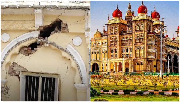 ನ್ಯೂಸ್ ನಾಟೌಟ್ : ವಿ ಶ್ವ ವಿಖ್ಯಾತ ಮೈಸೂರು ಅರಮನೆಯ ವರಾಹ ಗೇಟ್ನ ಮುಖ್ಯದ್ವಾರದ ಮೇಲ್ಛಾವಣಿ ಕುಸಿದು ಬಿದ್ದಿದ್ದು ಭಾರೀ ಅನಾಹುತವೊಂದು ತಪ್ಪಿದಂತಾಗಿದೆ.