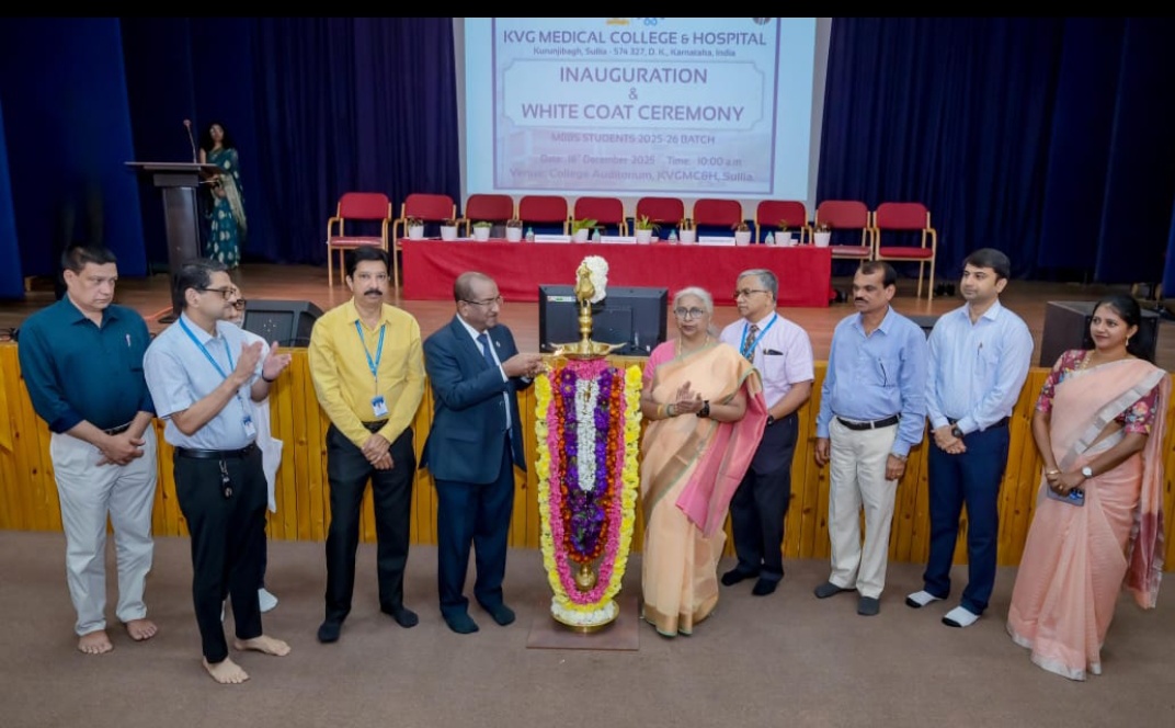 ಕೆವಿಜಿ ವೈದ್ಯಕೀಯ ಮಹಾವಿದ್ಯಾಲಯದಲ್ಲಿ 2025-26 ನೇ ಸಾಲಿನ ಎಮ್.ಬಿ.ಬಿ.ಎಸ್ ಬ್ಯಾಚ್ ಉದ್ಘಾಟನಾ ಕಾರ್ಯಕ್ರಮ ಹಾಗೂ ವೈಟ್ ಕೋಟ್ ಧಾರಣಾ ಸಮಾರಂಭ,ವೈಟ್ ಕೋಟ್ ಕೇವಲ ವಸ್ತ್ರವಲ್ಲ, ಅದು ಜವಾಬ್ದಾರಿ, ನೈತಿಕತೆ ಮತ್ತು ಮಾನವೀಯ ಸೇವೆಯ ಸಂಕೇತ” – ಡಾ ಕೆ.ವಿ ಚಿದಾನಂದ