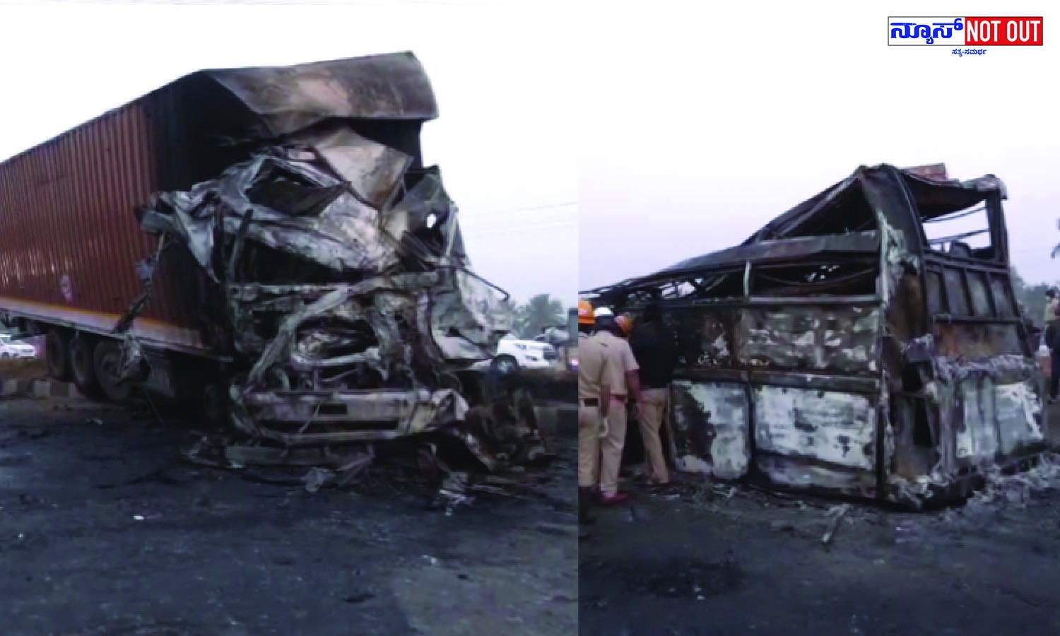 ನ್ಯೂಸ್ ನಾಟೌಟ್: ಖಾಸಗಿ ಬಸ್ ಮತ್ತು ಲಾರಿ ನಡುವೆ ಭೀಕರ ಅಪಘಾತ ಸಂಭವಿಸಿ ಬೆಂಕಿಗಾಹುತಿಯಾಗಿ 10ಕ್ಕೂ ಹೆಚ್ಚು ಮಂದಿ ಸಜೀವ ದಹನವಾದ ಘಟನೆ ಹಿರಿಯೂರು ತಾಲೂಕಿನ ಗೊರ್ಲತ್ತು ಗ್ರಾಮದ ಬಳಿ ನಡೆದಿದೆ. ಹಿರಿಯೂರಿನಿಂದ ಬೆಂಗಳೂರಿಗೆ ತೆರಳುತ್ತಿದ್ದ ಲಾರಿ ಬೆಂಗಳೂರಿನಿಂದ ಶಿವಮೊಗ್ಗಕ್ಕೆ ತೆರಳುತ್ತಿದ್ದ ಸೀಬರ್ಡ್ ಸ್ಲೀಪರ್ ಕೋಚ್ ಬಸ್ಸಿಗೆ ಗುದ್ದಿದೆ. ಲಾರಿ ಚಾಲಕನ ಅತಿ ವೇಗ ಹಾಗೂ ಅಜಾಗರೂಕತೆಯಿಂದ ಡಿವೈಡರ್ ದಾಟಿ ಬಸ್ಸಿಗೆ ಡಿಕ್ಕಿ ಹೊಡೆದಿದೆ. ಗುದ್ದಿದ ರಭಸಕ್ಕೆ ಬಸ್ಸಿಗೆ ಬೆಂಕಿ ಹೊತ್ತಿ ಕೊಂಡು 10ಕ್ಕೂ ಹೆಚ್ಚು ಮಂದಿ ಸ್ಥಳದಲ್ಲೇ ಮೃತಪಟ್ಟು 9 ಜನ ಪ್ರಾಣಾಪಾಯದಿಂದ ಪಾರಾಗಿದ್ದಾರೆ.