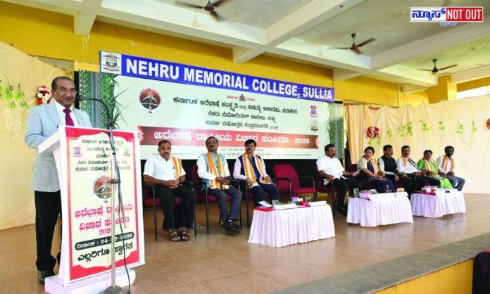 ನ್ಯೂಸ್ ನಾಟೌಟ್ : ಕರ್ನಾಟಕ ಅರೆಭಾಷೆ ಸಂಸ್ಕೃತಿ ಮತ್ತು ಸಾಹಿತ್ಯ ಅಕಾಡೆಮಿ, ಸುವರ್ಣ ಮಹೋತ್ಸವ ವರ್ಷದ ಅಂಗವಾಗಿ ಸುಳ್ಯದ ನೆಹರೂ ಮೆಮೋರಿಯಲ್ ಕಾಲೇಜಿನ ಸಹಯೋಗದಲ್ಲಿ ಆಯೋಜಿಸಿದ ಅರೆಭಾಷೆ ರಾಷ್ಟ್ರೀಯ ವಿಚಾರ ಸಂಕಿರಣ – 2026ನ್ನು ನೆಹರೂ ಮೆಮೋರಿಯಲ್ ಕಾಲೇಜಿನ ಕೆ.ವಿ.ಜಿ. ಷಷ್ಯಬ್ಬ ವೇದಿಕೆಯಲ್ಲಿ ಮಂಗಳವಾರ (ಫೆ. 24 ) ಉದ್ಘಾಟಿಸಲಾಯಿತು.
