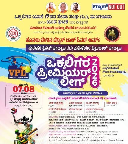 ನ್ಯೂಸ್ ನಾಟೌಟ್: ಯುವ ಘಟಕ – ಒಕ್ಕಲಿಗರ ಯಾನೆ ಗೌಡರ ಸೇವಾ ಸಂಘ( ರಿ) ಮಂಗಳೂರು ಇದರ ವತಿಯಿಂದ ಒಕ್ಕಲಿಗ ಪ್ರೀಮಿಯರ್ ಲೀಗ್ (ವಿಪಿಎಲ್) 2026 ಸೀಸನ್ -3 ಬಿಡ್ಡಿಂಗ್ ಮಾದರಿಯ ಹೊನಲು ಬೆಳಕಿನ ಅಂತರ್ ಜಿಲ್ಲಾ ಕ್ರಿಕೆಟ್ ಮತ್ತು ಜಿಲ್ಲಾ ಮಟ್ಟದ ಥ್ರೋಬಾಲ್ ಕೂಟವು ಮಾ 7 ಹಾಗೂ 8 ರಂದು ಮಂಗಳೂರಿನ ಸಹ್ಯಾದ್ರಿ ಇಂಜಿನಿಯರಿಂಗ್ ಕಾಲೇಜಿನ ಕ್ರೀಡಾಂಗಣದಲ್ಲಿ ನಡೆಯಲಿದೆ.